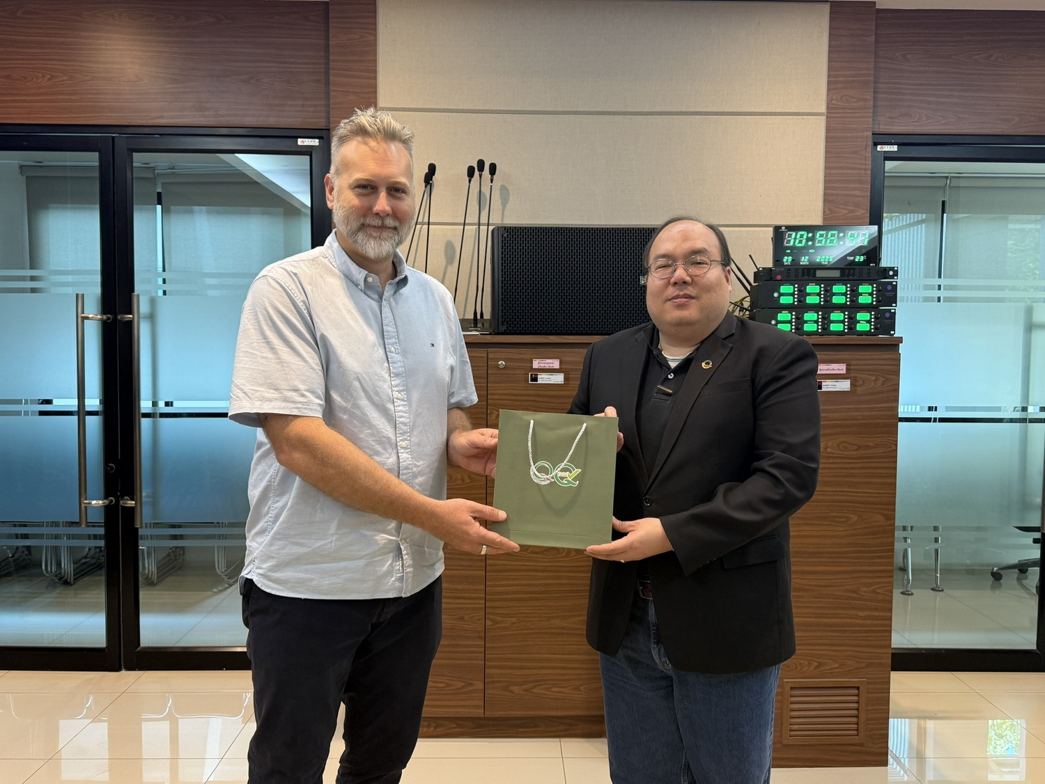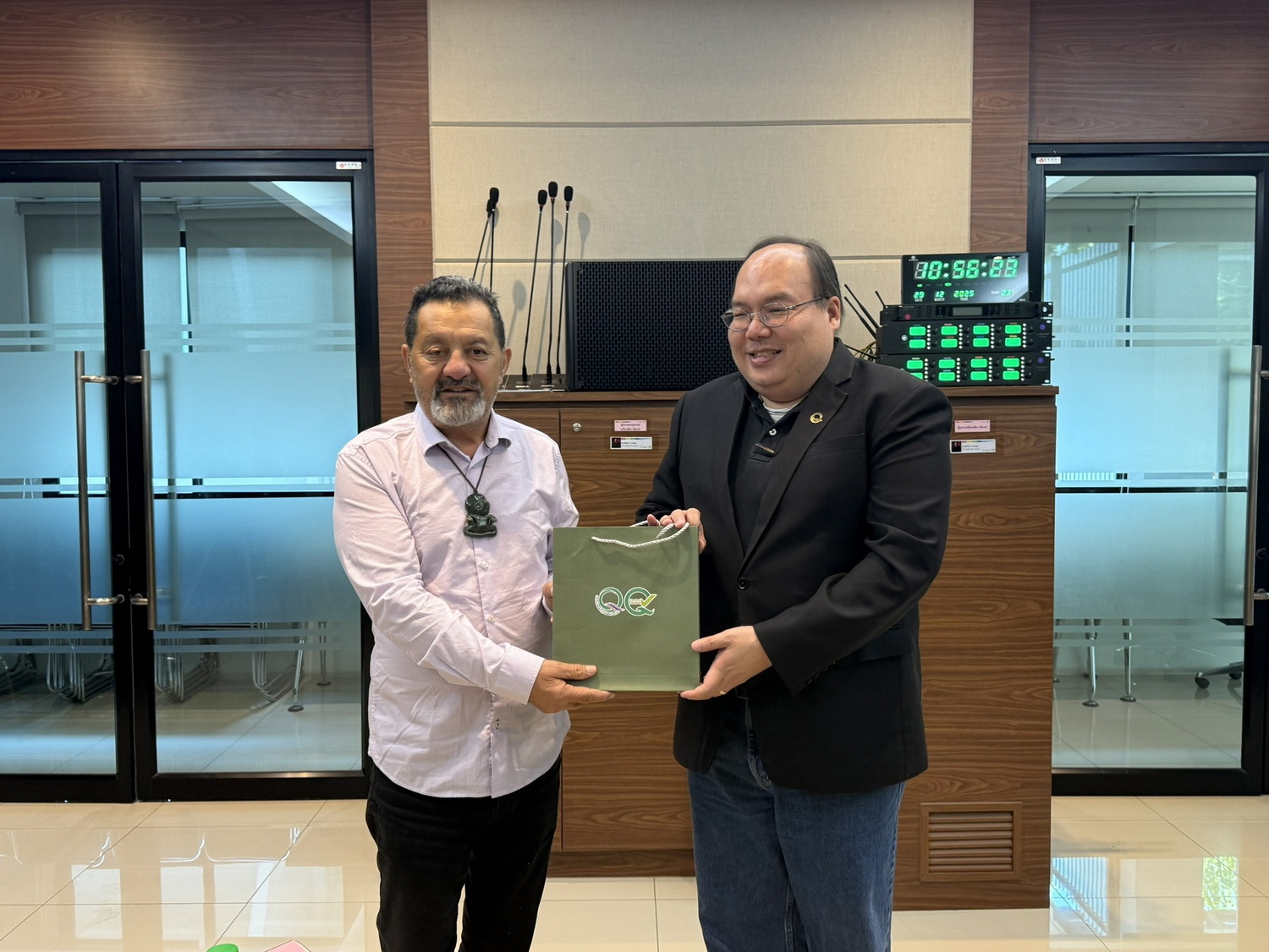 นายชาคริต เทียบเธียรรัตน์ กรรมการผู้อำนวยการ บริษัท ห้องปฏิบัติการกลาง (ประเทศไทย) จำกัด ต้อนรับคณะศึกษาดูงานจาก Education New Zealand (ENZ) ประเทศนิวซีแลนด์ ประกอบด้วย Dr. Sakthi Rangathan จาก Jix Research Innovation Lab, Dr. James To จาก The Asia New Zealand Foundation's Track II Programme และคณะผู้ศึกษาดูงานจำนวน 7 ท่าน ในการเยี่ยมชมระบบห้องปฏิบัติการมาตรฐานสากล ISO/IEC 17025 ของสำนักงานสาขากรุงเทพ เมื่อวันที่ 29 ธันวาคม 2568 ณ ห้องประชุม 4 อาคารศูนย์ฝึกอบรมและการประชุม บริษัท ห้องปฏิบัติการกลาง (ประเทศไทย) จำกัด สำนักงานใหญ่