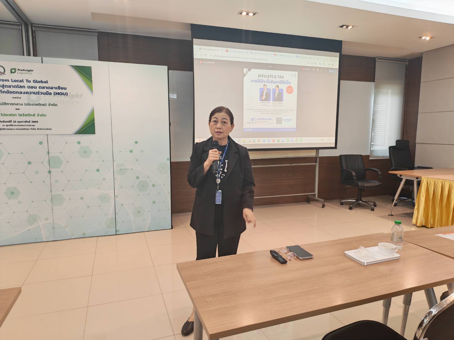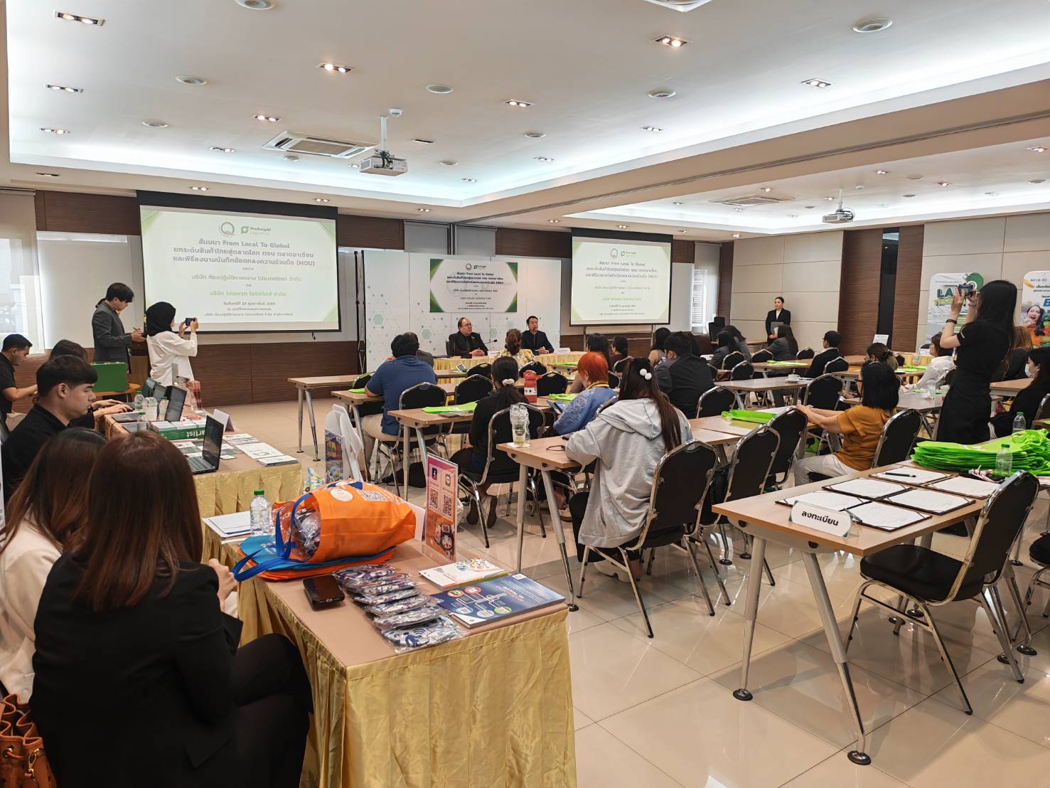 ก่อนงานสัมมนา ได้มีพิธีลงนามในบันทึกข้อตกลงความร่วมมือ ระหว่าง บริษัท ห้องปฏิบัติการกลาง (ประเทศไทย) จำกัด โดยนายชาคริต เทียบเธียรรัตน์ กรรมการผู้อำนวยการ กับ บริษัท โปรเฟรท โลจิสติกส์ จำกัด โดยนายเอก ตั้งกิตติภาภรณ์ cross border and e-commerce manager เพื่อจับมือช่วยกันยกระดับคุณภาพสินค้าของผู้ประกอบการในเครือข่าย และสร้างมาตรฐานการส่งออกสินค้าให้เป็นที่ยอมรับในเวทีโลก
