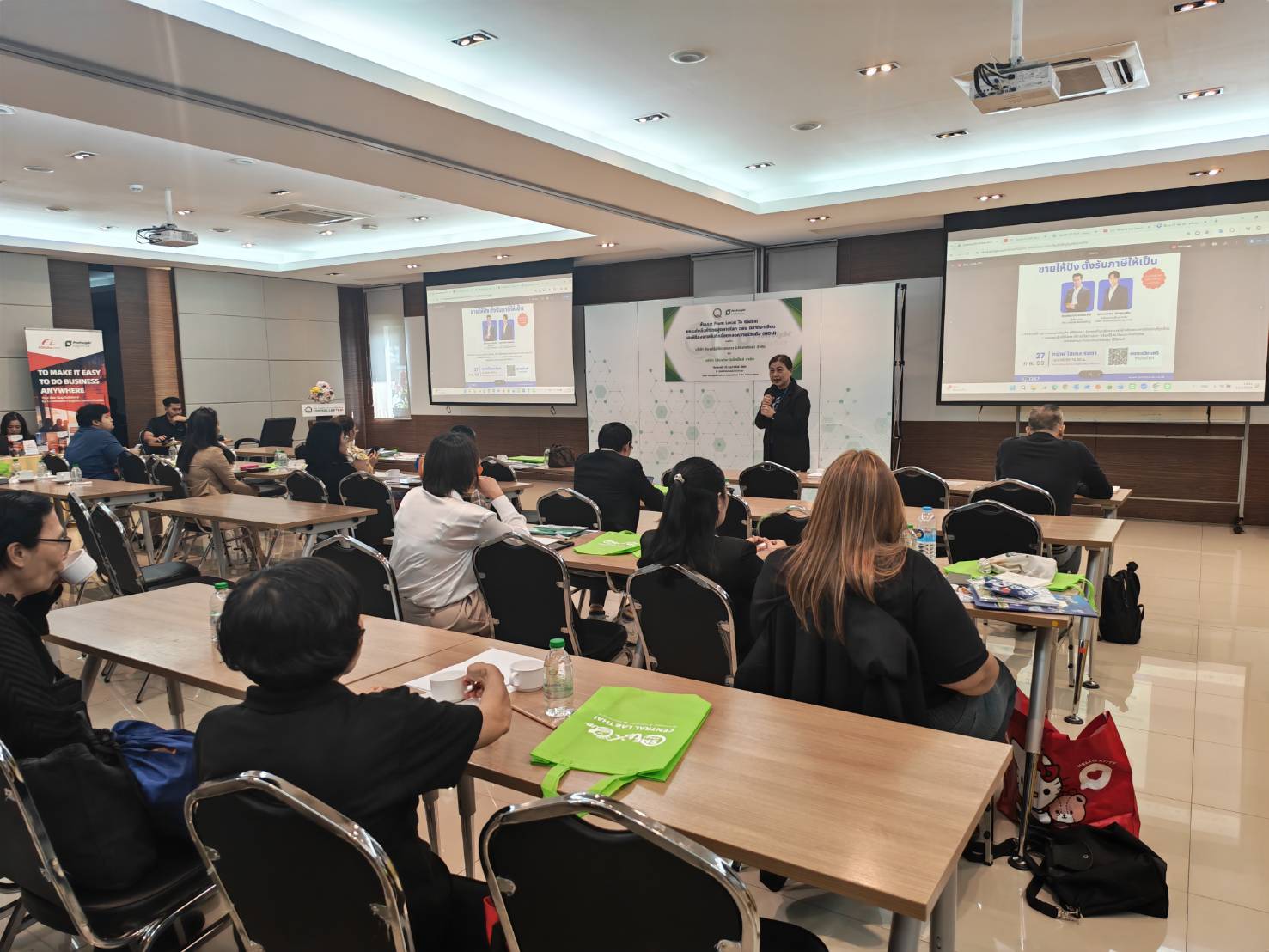 ภาพบรรยากาศงานสัมมนา From Local to Global ยกระดับสินค้าไทยสู่ตลาดโลก (ตอนตลาดอาเซียน) ที่เปิดให้ผู้ประกอบการและผู้สนใจลงทะเบียนเข้าร่วมฟังบรรยาย และร่วมกิจกรรมภายในงาน ซึ่งได้รับการตอบรับจากผู้ประกอบการเป็นอย่างดี เมื่อวันที่ 23 กุมภาพันธ์ 2569 ณ ห้องประชุม 4-5 อาคารฝึกอบรมและการประชุม บริษัท ห้องปฏิบัติการกลาง (ประเทศไทย) จำกัด สำนักงานใหญ่