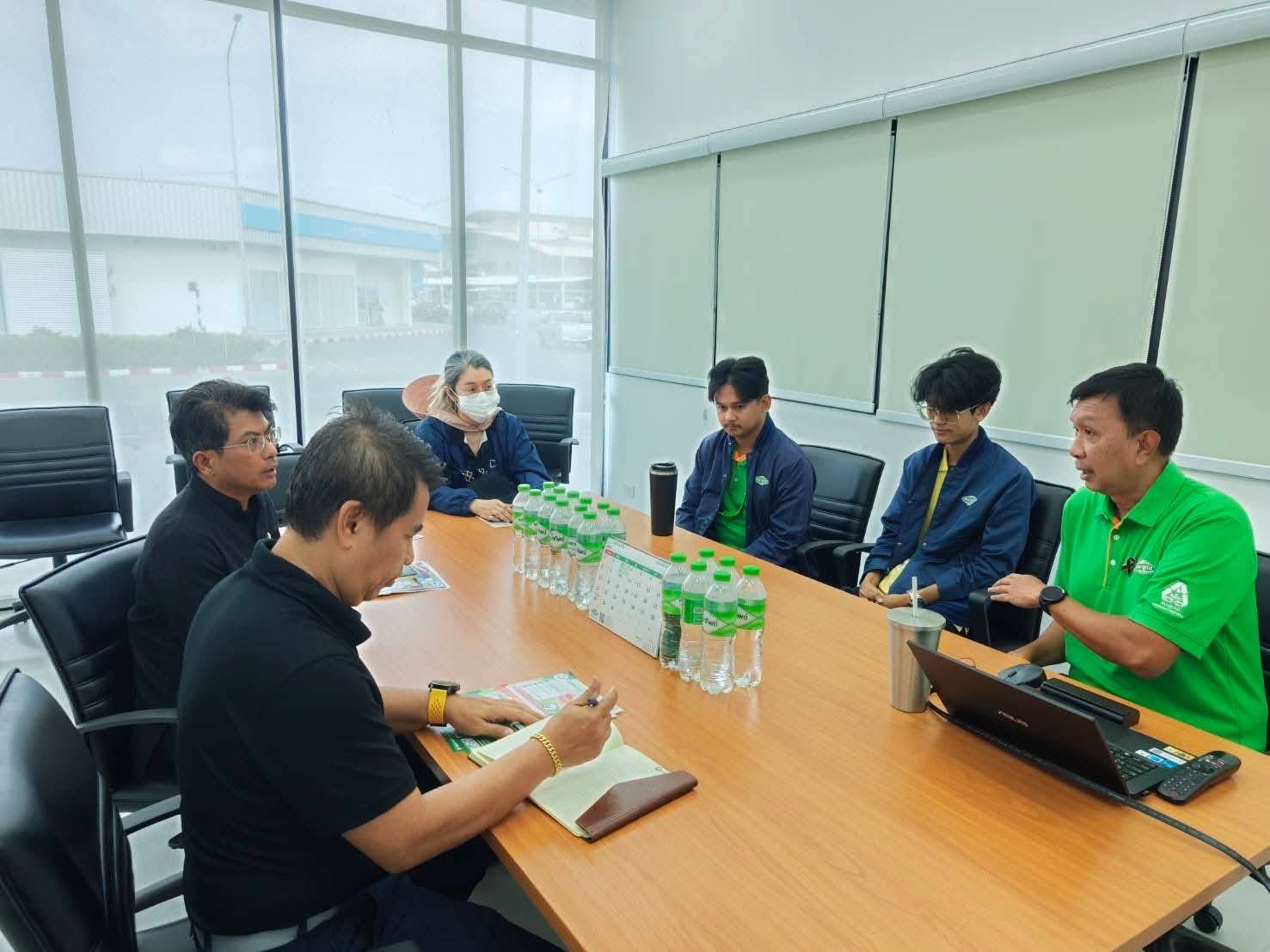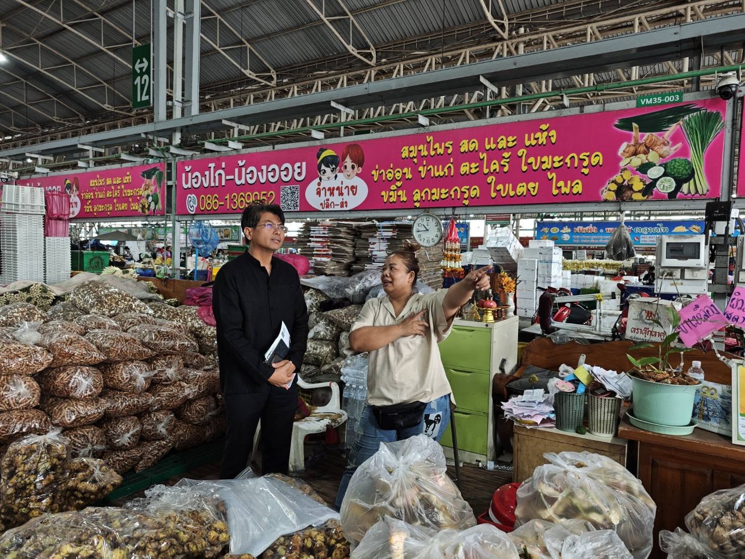 นายชูศักดิ์ พุกสุวรรณ์ ผู้อำนวยการศูนย์ตลาดไท บริษัท ห้องปฏิบัติการกลาง (ประเทศไทย) จำกัด ให้การต้อนรับ นายนิพิจ พินิจผล เกษตรจังหวัดนนทบุรี พร้อมด้วยเจ้าหน้าที่สำนักงานเกษตรจังหวัดนนทบุรี ในการลงพื้นที่ศึกษาดูงานด้านการบริหารจัดการช่องทางการตลาดสินค้าเกษตร เมื่อวันที่ 23 มีนาคม 2569 ณ ศูนย์ตรวจรับรองมาตรฐานความปลอดภัยสินค้าเกษตร ตลาดไท