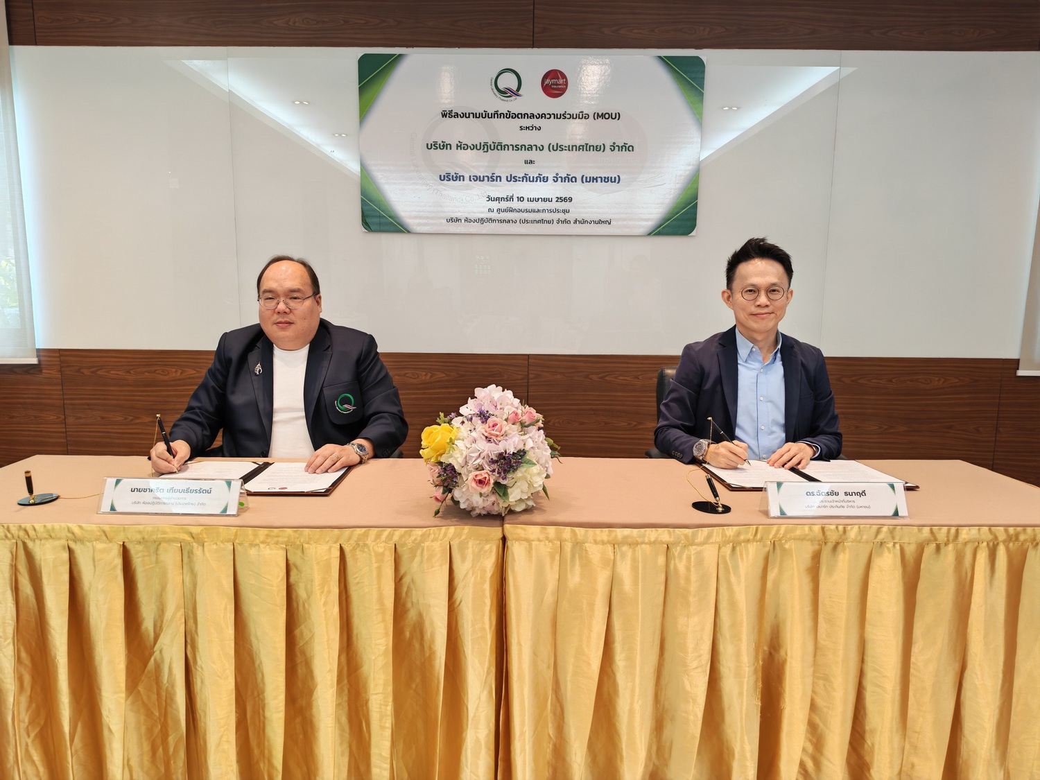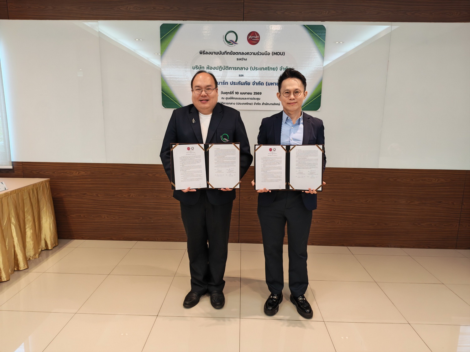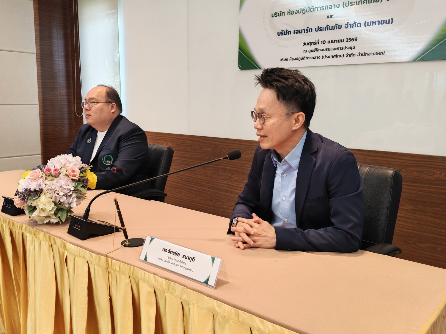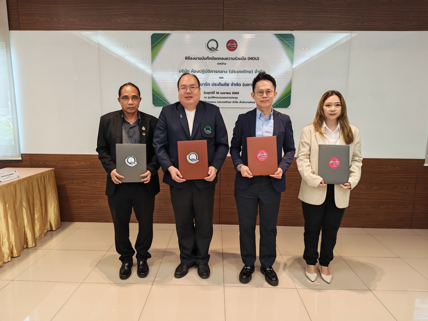 นายชาคริต เทียบเธียรรัตน์ กรรมการผู้อำนวยการ บริษัท ห้องปฏิบัติการกลาง (ประเทศไทย) จำกัด ลงนามในบันทึกข้อตกลงความร่วมมือ (MOU) ร่วมกับ บริษัท เจมาร์ท ประกันภัย จำกัด (มหาชน) โดย ดร.ฉัตรชัย ธนาฤดี ประธานเจ้าหน้าที่บริหารบริษัท สำหรับสร้างความเชื่อมั่นในการดูแลเครื่องมือวิเคราะห์ทางวิทยาศาสตร์ที่ใช้ในกระบวนการทดสอบทางห้องปฏิบัติการ เมื่อวันที่ 10 เมษายน 2569 ณ ห้องประชุม 4 อาคารศูนย์ฝึกอบรมและการประชุม บริษัท ห้องปฏิบัติการกลาง (ประเทศไทย) จำกัด สำนักงานใหญ่