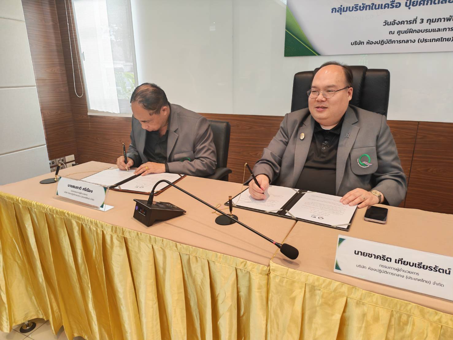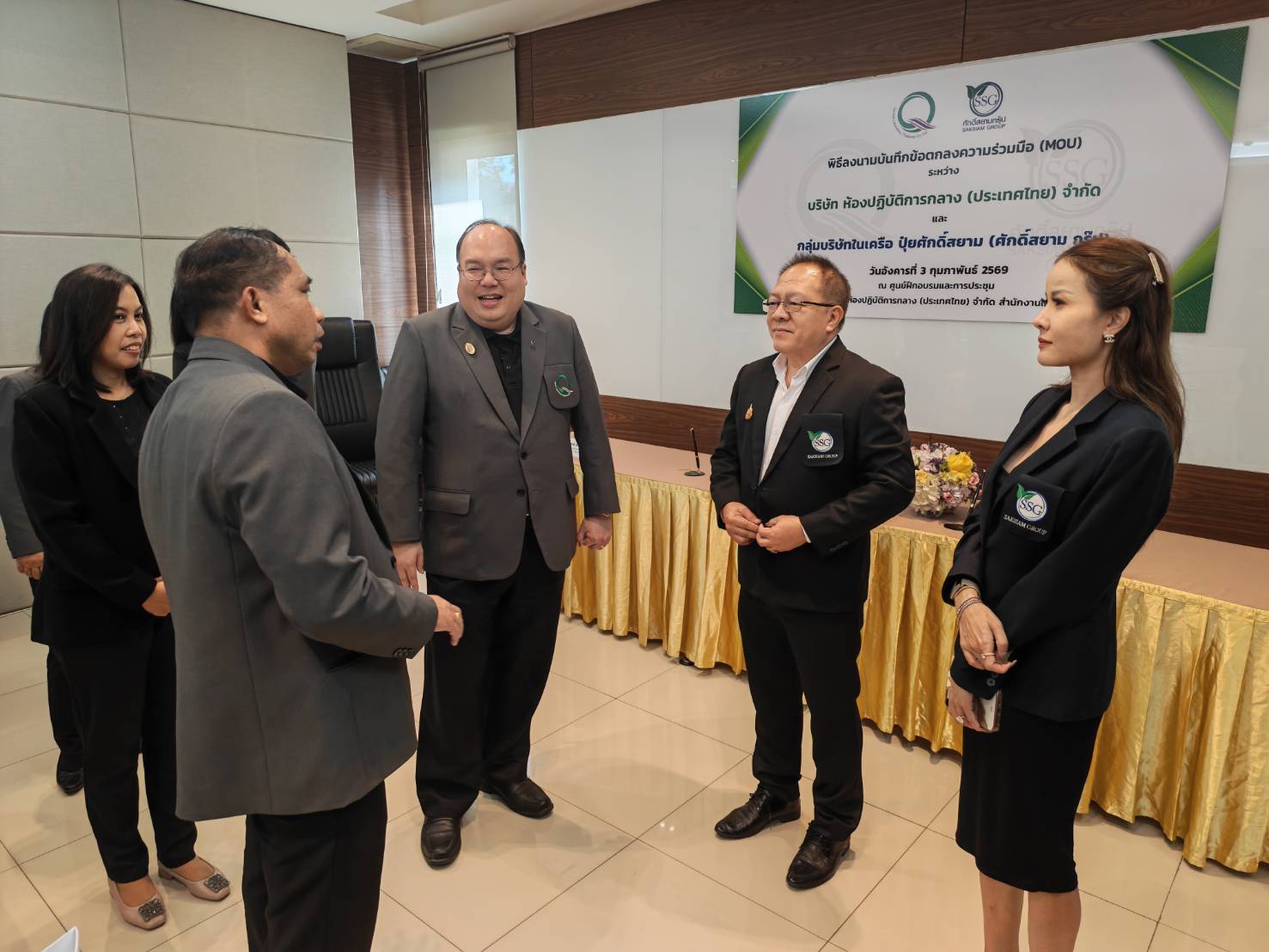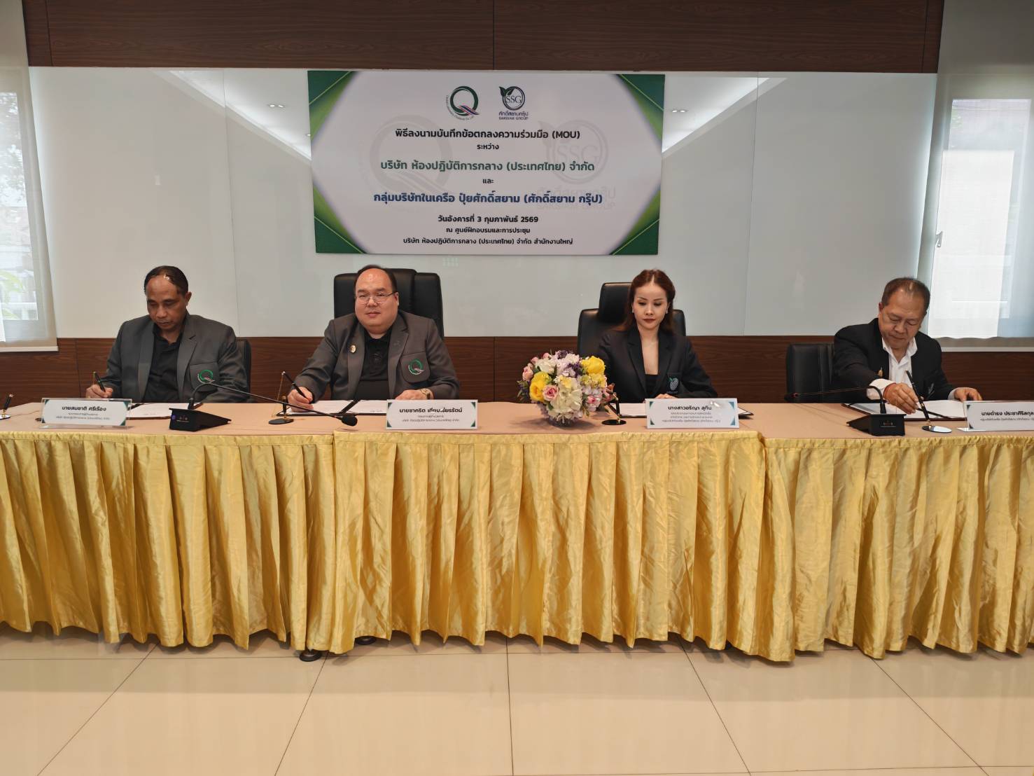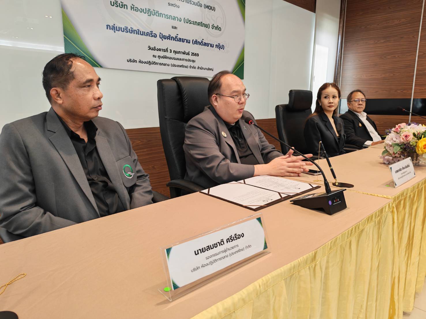 นายชาคริต เทียบเธียรรัตน์ กรรมการผู้อำนวยการ บริษัท ห้องปฏิบัติการกลาง (ประเทศไทย) จำกัด พร้อมด้วย นายสมชาติ ศรีเรือง รองกรรมการผู้อำนวยการ และ นางสาวอริญา สุทิน รองประธานและกรรมการฝ่ายจัดซื้อ การจัดการ และการค้าระหว่างประเทศ กลุ่มบริษัทในเครือ ปุ๋ยศักดิ์สยาม (ศักดิ์สยาม กรุ๊ป) พร้อมด้วยนายดำรง ประชาศิริสกุล กรรมการบริหารฝ่ายขาย/การตลาด และการค้าระหว่างประเทศ ร่วมลงนามข้อตกลงความร่วมมือ (MOU) ของทั้งสองหน่วยงาน ในการสนับสนุนและขยายงานด้านการทดสอบทางห้องปฏิบัติการ เพื่อส่งเสริมการพัฒนาคุณภาพในผลิตภัณฑ์ปัจจัยการผลิตทางการเกษตร รวมถึงการยกระดับองค์ความรู้ทางด้านวิชาการร่วมกัน เพื่อสร้างการเติบโตทางธุรกิจให้เป็นไปอย่างต่อเนื่องและมั่นคง เมื่อวันที่ 3 กุมภาพันธ์ 2569 ณ ห้องประชุม 4 อาคารศูนย์ฝึกอบรมและการประชุม บริษัท ห้องปฏิบัติการกลาง (ประเทศไทย) จำกัด สำนักงานใหญ่