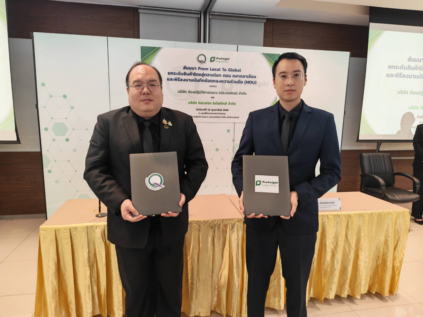 ก่อนงานสัมมนา ได้มีพิธีลงนามในบันทึกข้อตกลงความร่วมมือ ระหว่าง บริษัท ห้องปฏิบัติการกลาง (ประเทศไทย) จำกัด โดยนายชาคริต เทียบเธียรรัตน์ กรรมการผู้อำนวยการ กับ บริษัท โปรเฟรท โลจิสติกส์ จำกัด โดยนายเอก ตั้งกิตติภาภรณ์ cross border and e-commerce manager เพื่อจับมือช่วยกันยกระดับคุณภาพสินค้าของผู้ประกอบการในเครือข่าย และสร้างมาตรฐานการส่งออกสินค้าให้เป็นที่ยอมรับในเวทีโลก