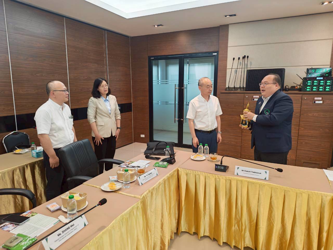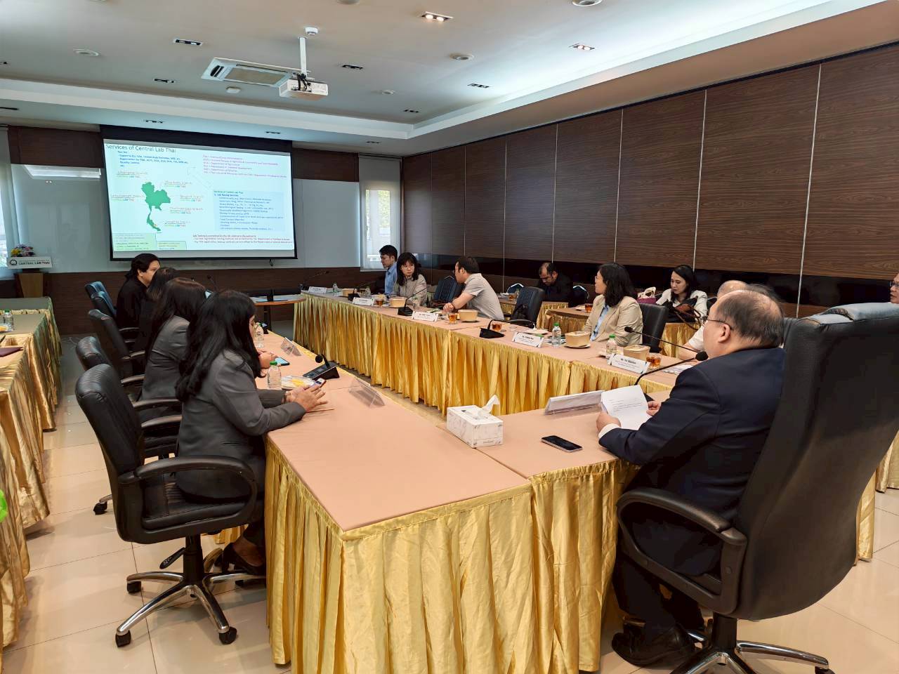 นายชาคริต เทียบเธียรรัตน์ กรรมการผู้อำนวยการ บริษัท ห้องปฏิบัติการกลาง (ประเทศไทย) จำกัด นางชม้อย ทองลือ ที่ปรึกษาด้านเทคนิควิชาการ นางวนิสา มีเจริญ ผู้อำนวยการสำนักงานสาขากรุงเทพ นางสาวเมตตา ถนอมเกิด ผู้อำนวยการสำนักงานพาณิชย์และการขาย นางสาวศรียาภรณ์ พึ่งอ่ำ รองผู้อำนวยการสำนักงานสาขากรุงเทพด้านบริหาร และนายอธิรัช ภัทรเดชพงศ์ ผู้อำนวยการส่วนการตลาดและประชาสัมพันธ์ ให้การต้อนรับคณะผู้ตรวจประเมินด้านความปลอดภัยอาหารส่งออกไปจีนจากสำนักงานศุลกากรแห่งสาธารณรัฐประชาชนจีน (General Administration of Customs of the People's Republic China: GACC) ในการตรวจประเมินรับรองความสามารถของห้องปฏิบัติการ โดยมีผู้แทนจากสำนักงานมาตรฐานสินค้าเกษตรและอาหารแห่งชาติ (มกอช.) และกรมวิชาการเกษตร ในฐานะผู้ประสานงานและสังเกตการณ์สำหรับการตรวจประเมินห้องปฏิบัติการในครั้งนี้ เมื่อวันที่ 8 เมษายน 2569 ณ ห้องประชุม 4 อาคารศูนย์ฝึกอบรมและการประชุม บริษัท ห้องปฏิบัติการกลาง (ประเทศไทย) จำกัด สำนักงานใหญ่