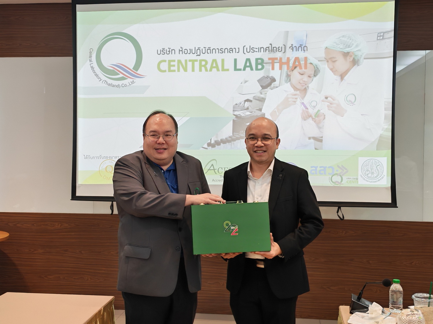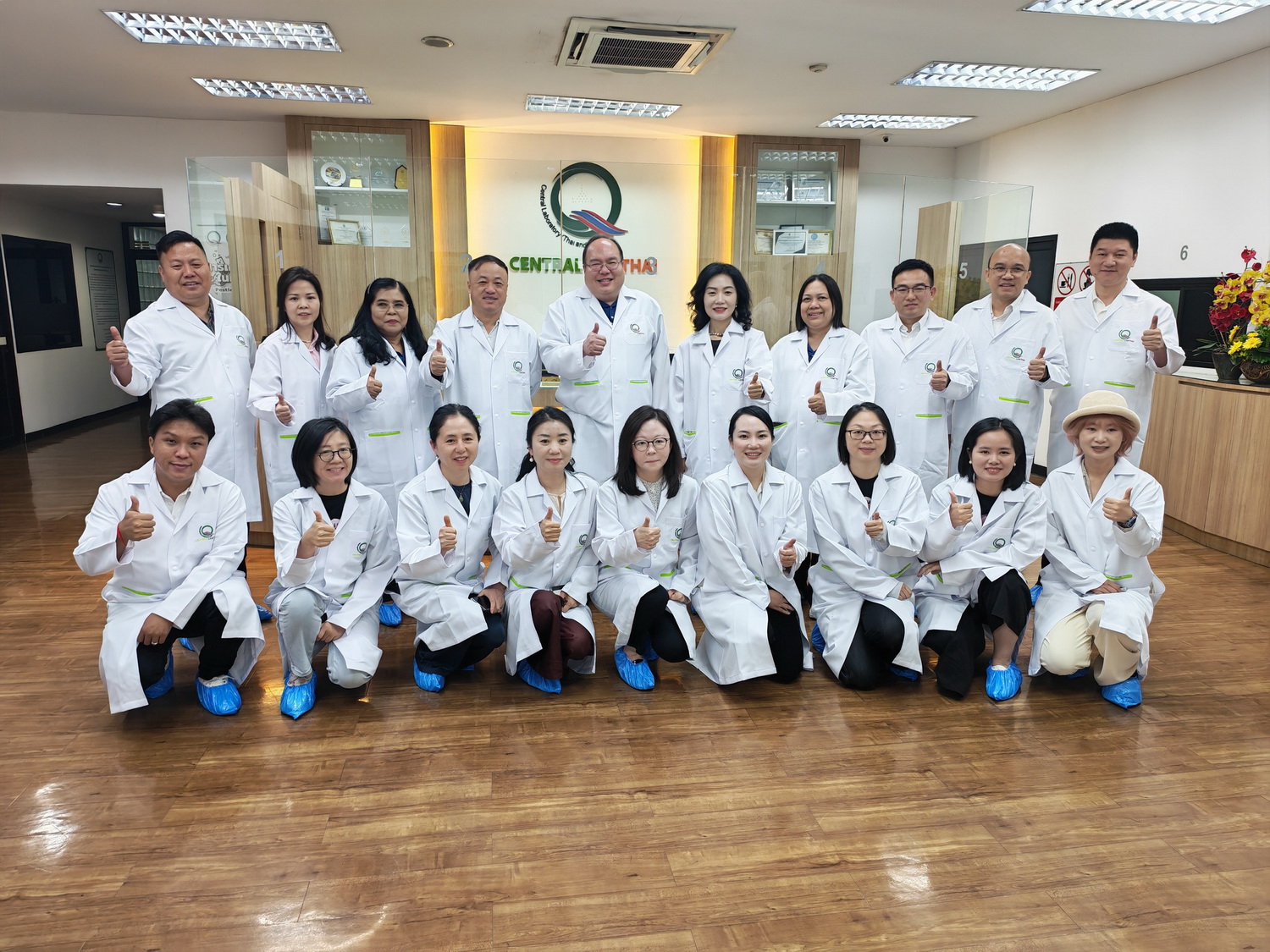 นายชาคริต เทียบเธียรรัตน์ กรรมการผู้อำนวยการ บริษัท ห้องปฏิบัติการกลาง (ประเทศไทย) จำกัด พร้อมด้วยคณะผู้บริหาร นางชม้อย ทองลือ ที่ปรึกษาด้านเทคนิควิชาการ นางวนิสา มีเจริญ ผู้อำนวยการสำนักงานสาขากรุงเทพ นางสาวเมตตา ถนอมเกิด ผู้อำนวยการสำนักงานพาณิชย์และการขาย นางสาวพูลศิริ พฤกษ์กานนท์ รองผู้อำนวยการสำนักงานสาขากรุงเทพ ด้านปฏิบัติการ และนางสาวพรรวินท์ ไตรจิตต์ภักดี ผู้อำนวยการส่วนแผนและงบประมาณ ให้การต้อนรับคณะจาก บริษัท Shenzhen Pagoda Industrial (Group) จำกัด ประเทศจีน นำโดย คุณ Xu Yanlin CEO คุณ Zhu Qidong Executive Vice President และคุณ Wu Chongwu Executive Vice President พร้อมด้วยคณะผู้บริหาร เจ้าหน้าที่ และสื่อมวลชน รวมถึงผู้ร่วมติดตามคณะจากฝ่ายเกษตร ประจำสถานกงสุลใหญ่ ณ นครกว่างโจว และผู้เข้าร่วมจากกองพัฒนาระบบและรับรองมาตรฐานสินค้าพืช กรมวิชาการเกษตร รวมกว่า 30 ท่าน ในการเข้าเยี่ยมชมระบบห้องปฏิบัติการของเซ็นทรัลแล็บไทยอย่างเป็นทางการ เมื่อวันที่ 18 เมษายน 2569 ณ ห้องประชุม 4 - 5 อาคารศูนย์ฝึกอบรมและการประชุม บริษัท ห้องปฏิบัติการกลาง (ประเทศไทย) จำกัด สำนักงานใหญ่